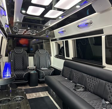 At Luxury Rides LLC, we specialize in high-end group transportation. Our Mercedes-Benz Sprinter vans offer a smooth, luxurious ride, perfect for business executives, wedding parties, family outings, and special events. Here’s why our service stands out:
